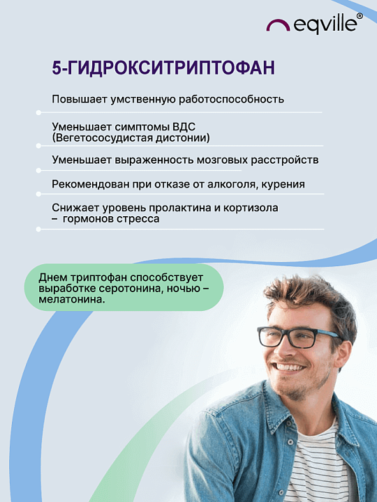 1. В человеческом организме 5-HTP преобразуется в мозгу в серотонин (один из основных нейромедиаторов, «гормон счастья»). Это означает, что он участвует в биосинтезе мелатонина и серотонина из аминокислоты - триптофана.