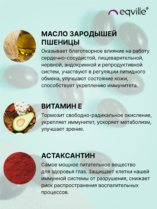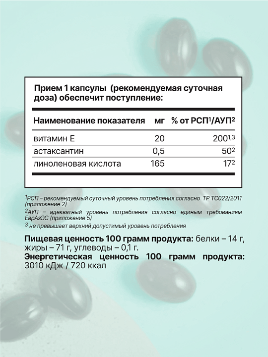 Астаксантин является жирорастворимым веществом, совместно с маслом зародышей пшеницы и витамином Е усиливают действие друг друга.