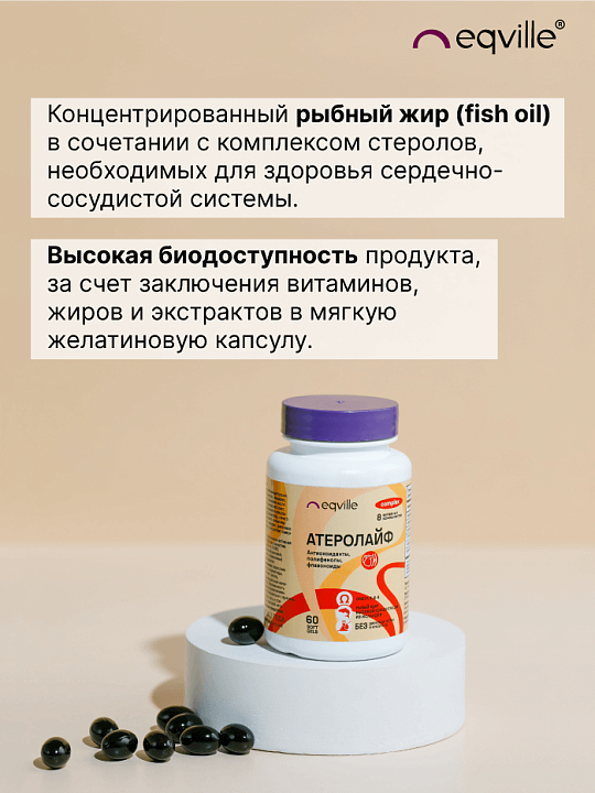 Атеролайф помогает поддерживать холестерин на необходимом для здоровья уровне, вытесняя из организма излишки экзогенного холестерина, снижая риск развития и прогрессирования атеросклероза, способствуя улучшению состояния сосудов.