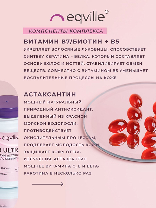 - Астаксантин — мощный натуральный антиоксидант выделенный из красной водоросли Haematococcus pluvialis, защищает клетки организма от свободных радикалов и ультрафиолетовых лучей. Астаксантин мощнее витамина C в 65 раз, витамина Е в 10 раз, бета-каротина в 50 раз. Самое мощное питательное вещество для здоровья глаз. Защищает кожу от UV-лучей.