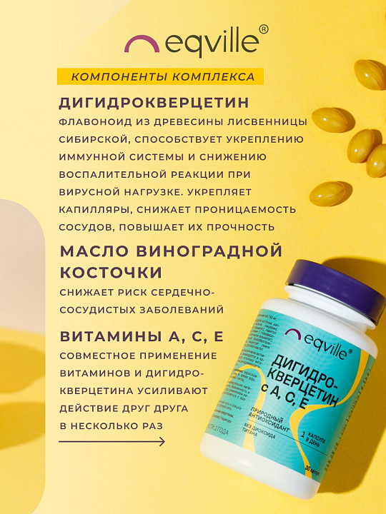 - Дигидрокверцетин защищает организм от пагубного воздействия внешних и внутренних негативных факторов, токсинов и свободных радикалов.Тем самым предотвращает повреждение тканей и клеток организма, снижая оксидативный стресс, что способствует повышению общей сопротивляемости организма, укреплению иммунитета, противодействию преждевременному старению и повышению тонуса всех систем организма.