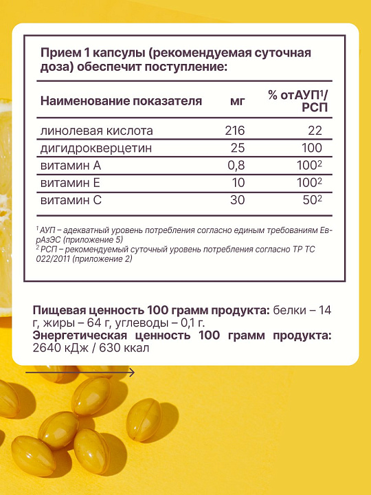 - Витамин С в форме аскорбил пальмитата, содержится в комплексе в жирорастворимой форме, что делает его более эффективным и пролонгированным по действию.