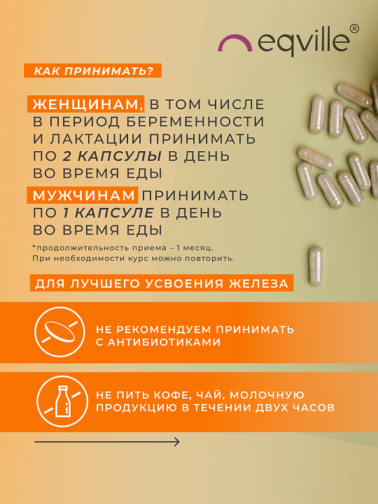 Комплекс в двух капсулах содержит максимальную дозировку двухвалентного железа.