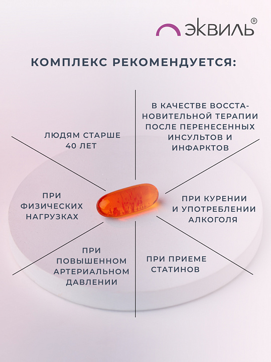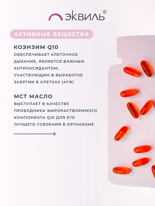 Коэнзим обеспечивает клеточное дыхание, является важным антиоксидантом участвующим в выработке энергии в клетках (АТФ), который эффективно применяется для поддержания здоровья сердца, мозга, митохондриальной энергии.Комплекс разработан в форме биодоступной Softgel капсулы, где Q10 в форме убихинона действует совместно с МСТ маслом (среднецепочечные триглицериды), которые выступают в качестве проводника жирорастворимого компонента Q10 для его лучшего усвоения в организме.