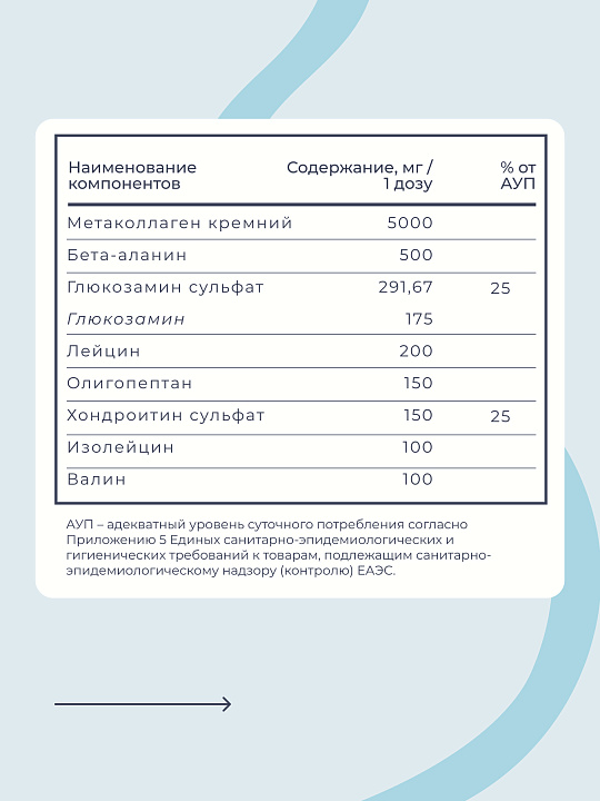В комплексе "Коллаген 5000 «Хондро»" пептидный короткоцепочный коллаген в безопасной, эффективной и профилактической дозировке (5000 мг). Комплекс обогащен органическими минералами-промоутерами коллагена, выделенными из лечебной минеральной воды глубоководного озера из Западной Сибири. В состав воды входят: кремний, калий, магний, кальций, железо, фтор, бром, йод, сульфат, гидрокарбонаты и другие полезные для организма элементы. Этот натуральный ресурс из подземных источников обладает лечебными свойствами, оказывает на организм человека оздоравливающее воздействие за счет повышенного содержания полезных биологически активных компонентов и особенностей химического состава.
