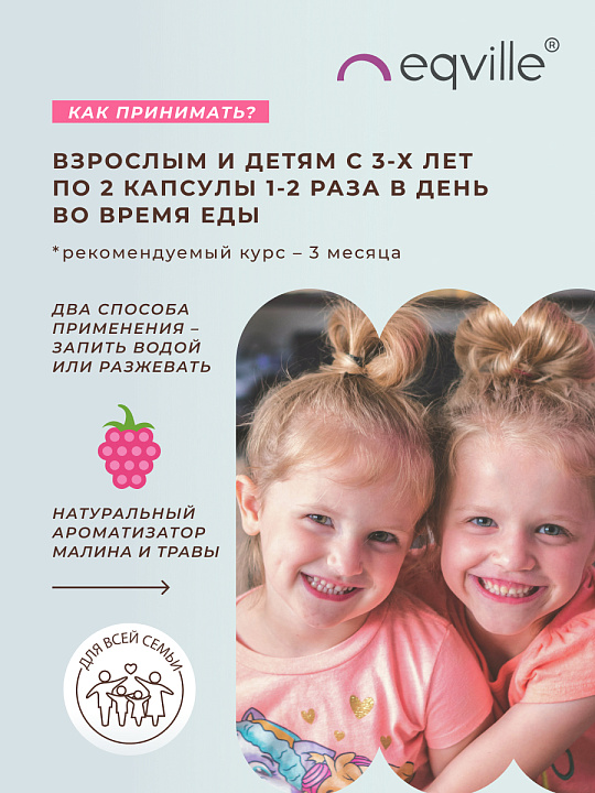 4. Два способа применения – запить водой или разжевать. Для удобства использования детям с 3х лет мы разработали жевательную форму мягкой желатиновой капсулы.