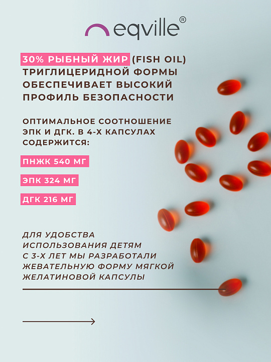 Для детского комплекса мы используем триглициридную форму рыбного жира с низким кислотным числом, что обеспечивает высокий профиль безопасности.