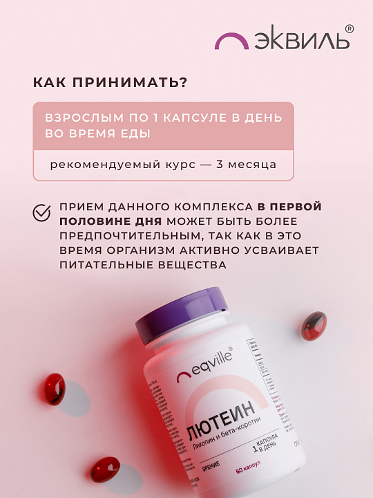 Лютеин —каратиноид природный светофильтр, обеспечивает высокое качество зрения и комплексную защиту макулы и других структур глаза от воздействия на них неблагоприятных факторов. Лютеин способен тормозить образование и накопление липофусцина, пигмента, который задействован в процессе развития возрастной дистрофии сетчатки глаза.