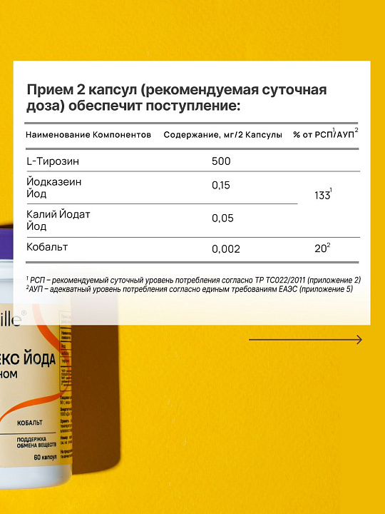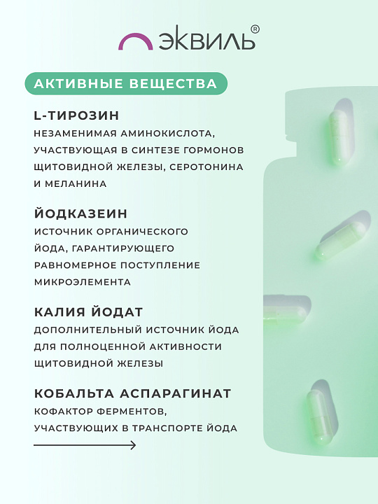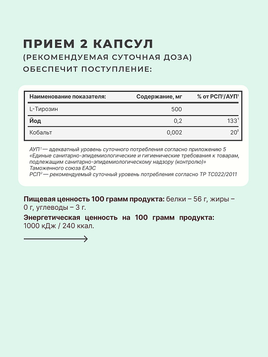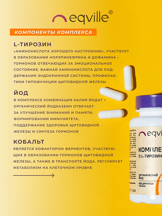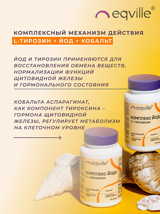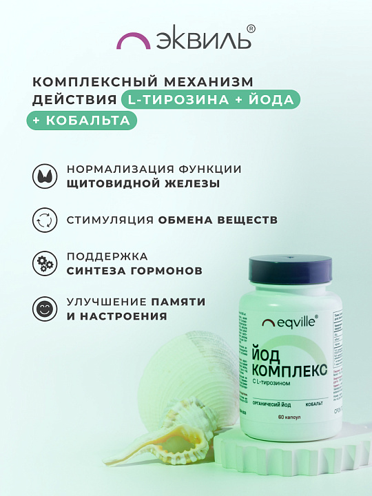Йод и тирозин применяются для восстановления обмена веществ и нормализации функций щитовидной железы. Тирозин способствует выработке мелатонина, а также поддерживает функцию надпочечников и гипофиза. Тирозин в синергии с йодом стимулирует обмен веществ, ускоряет жиросжигание за счет контроля активности половых гормонов, снижает аппетит за счет повышения дофамина.