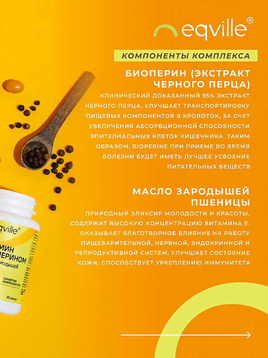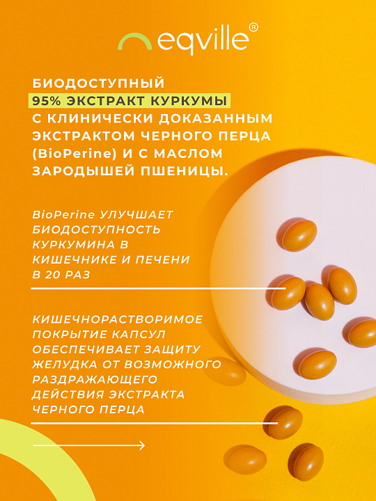 В комплексе содержится BioPerine — клинический доказанный 95% экстракт черного перца, который является натуральным усилителем усвояемости питательных веществ, способным увеличивать биодоступность куркумина в кишечнике и печени в 20 раз.