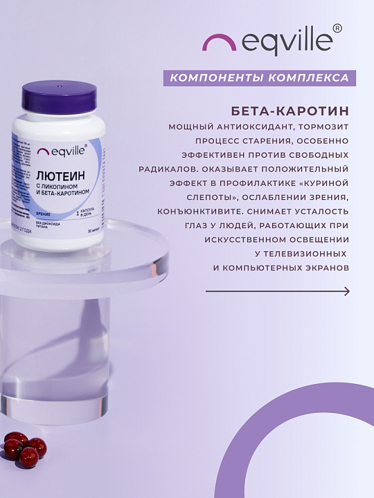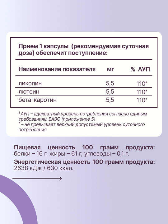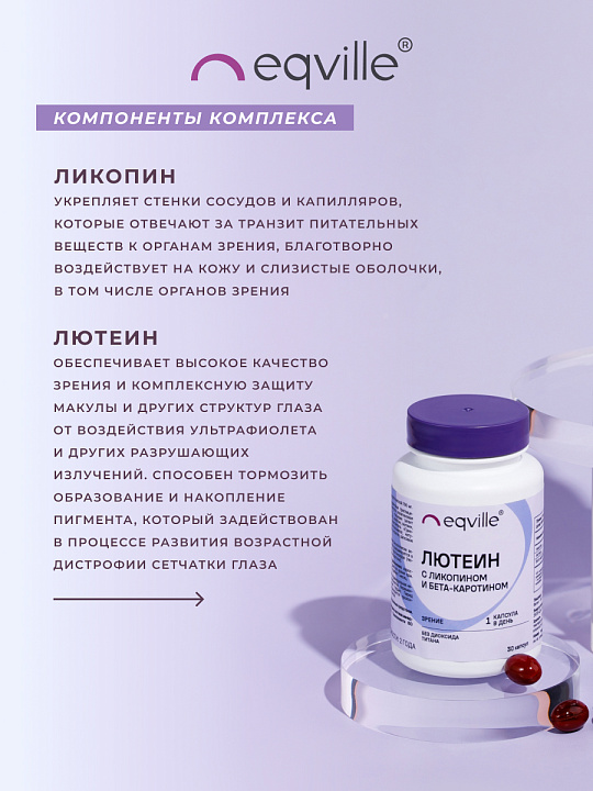 Ликопин — укрепляет стенки сосудов и капилляров, благотворно воздействует на кожу и слизистые оболочки, в том числе органов зрения. Ликопин защищает сетчатку от индуцированных светом повреждений и возрастной дегенерации макулы. Это вещество способствует укреплению стенок сосудов и капилляров, которые отвечают за транзит питательных веществ к органам зрения.