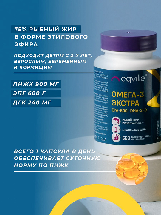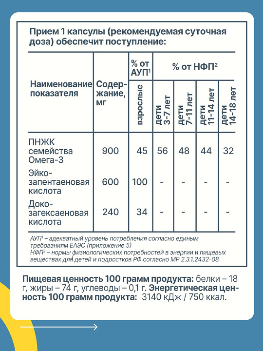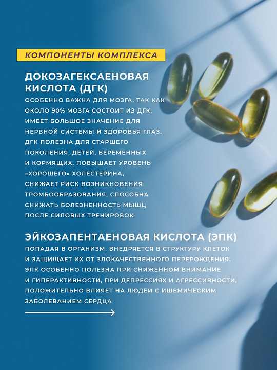 Всего 1 капсула в день обеспечивает суточную норму по ПНЖК.