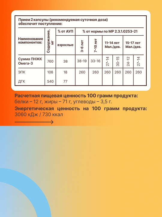 ПНЖК Омега–3 относятся к эссенциальным (незаменимым) жирным кислотам. Они не синтезируются в организме человека, поэтому крайне важно ежедневно получать их в достаточном количестве с пищей. Основные представители ПНЖК омега-3 - эйкозапентаеновая кислота (ЭПК/EPA) и докозагексаеновая кислота (ДГК/DHA). Главная роль ЭПК в организме – синтез т.н. эйказаноидов – молекул-сигнализаторов, играющих важную физиологическую роль в нашем организме. Эйказаноиды, произведённые из Омега-3, снижают уровень воспаления, улучшает реологические свойства крови. ДГК - важный структурный компонент кожи и радужной оболочки глаз. ДГК играет жизненно важную роль как при развитии мозга у детей, так и при функционировании мозга у взрослых. Нехватка ДГК в ранний период жизни ассоциируется с проблемами в более позднем возрасте, в т.ч. трудностями в учёбе, синдромом дефицита внимания и гиперактивности, агрессивным поведением и другими расстройствами ПНЖК омега-3 участвуют в обеспечении функционирования клеточных мембран, влияют на их текучесть.