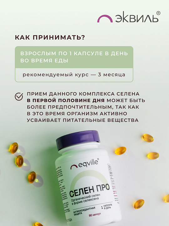 Селен является незаменимым элементом антиоксидантной системы организма человека, обладает иммуномодулирующим действием, участвует в регуляции действия тиреоидных гормонов. Селен защищает клетки от воздействия свободных радикалов. При его недостатке наблюдаются нарушения со стороны сердечно-сосудистой деятельности, снижения иммунитета, заболевания кожи, выпадение волос.