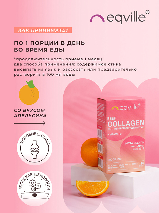 Пептидный говяжий коллаген высокой концентрации в дозировке 10 000 мг, произведенный по японской технологии от компании Nitta, с его усилителем усвоения – витамином С для поддержания здоровья суставов и связок.