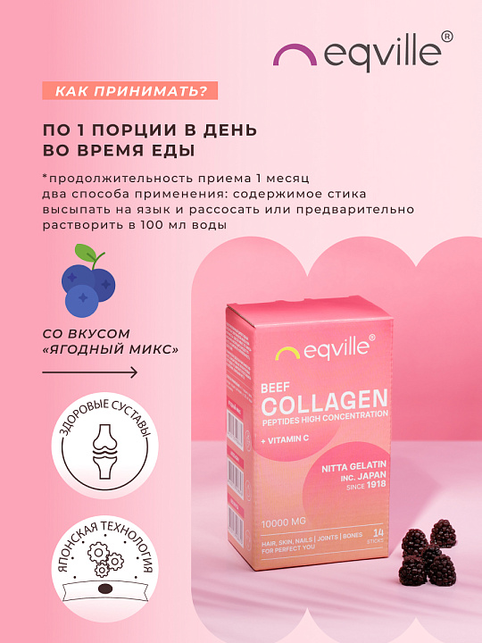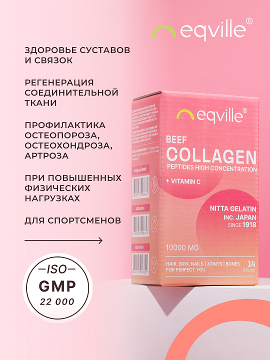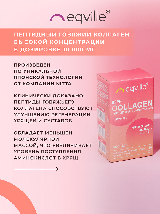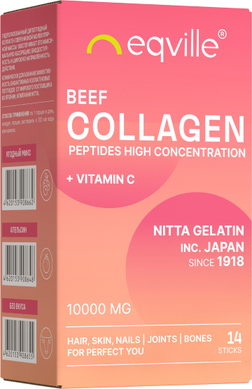 Пептидный говяжий коллаген высокой концентрации в дозировке 10 000 мг, произведенный по японской технологии от компании Nitta, с его усилителем усвоения – витамином С для поддержания здоровья суставов и связок.