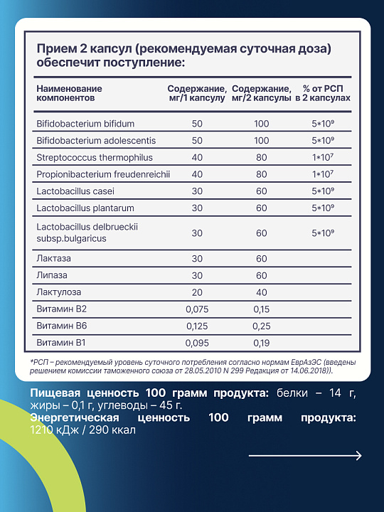 - Запатентованная технология микрокапсулирования живых пробиотических бактерий распылительной сушкой защитной средой – пребиотический матрикс из лактулозы, позволяет сохранять жизнеспособность живых пробиотических бактерий, доставляет их прямо в кишечник, повышает устойчивость к антибиотикам и желудочному соку.