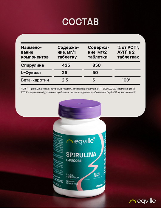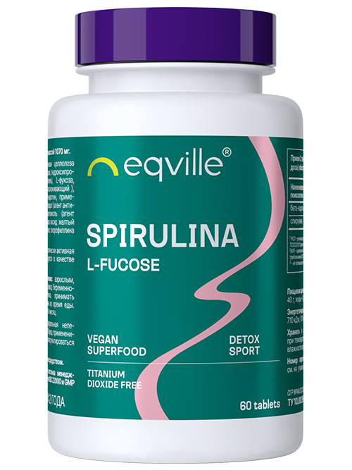 В комплексе спирулина работает совместно с бета-каротином и L-фукозой - минорным сахаром, совместно улучшает состояние микрофлоры кишечника, уменьшает воспаление.