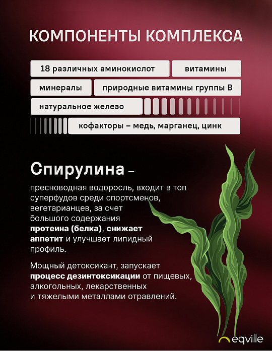 В спирулине содержится 18 различных аминокислот, витамины, минералы, что является питательным коктейлем для всего организма и возможности применения в различных профилактических целях.
