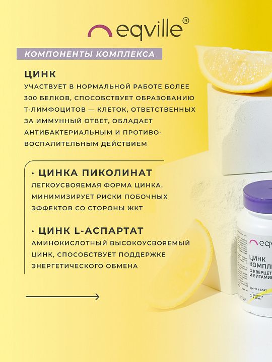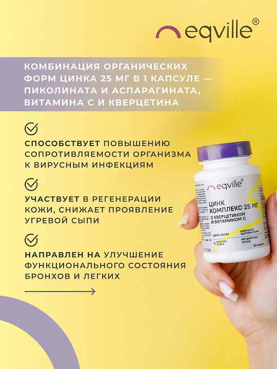 Комплекс с комбинацией органических форм цинка пиколината и аспартата в максимальной дозировке 25 мг в 1 капсуле с синергистами его усвоения - биофлавоноидом кверцетином и витамином С в активной форме натрия аскорбата, направленный на поддержание сопротивляемости организма к вирусным инфекциям, снижению воспалительных процессов в организме, синтез коллагена, поддержания сердечно-сосудистой системы.Цинк в форме пиколината относится к хелатной форме, которая легко усваивается организмом и минимизирует риски развития побочных эффектов со стороны ЖКТ.