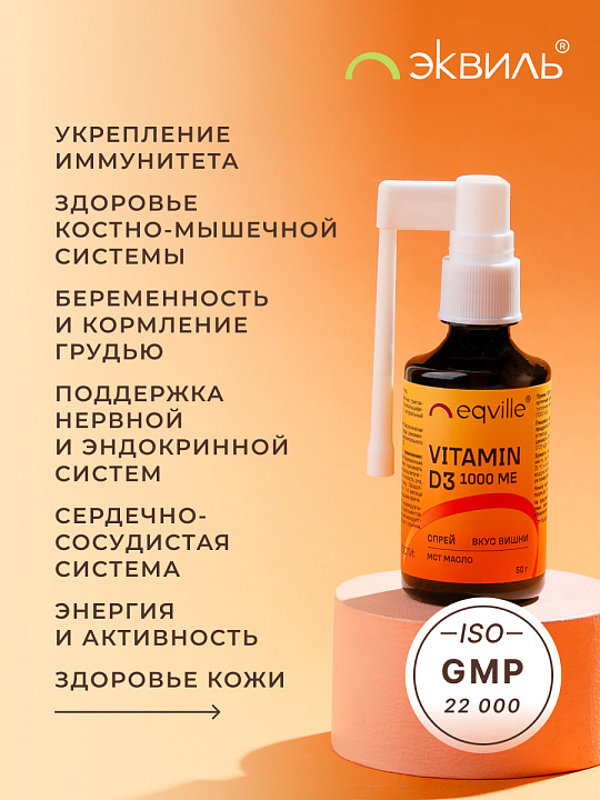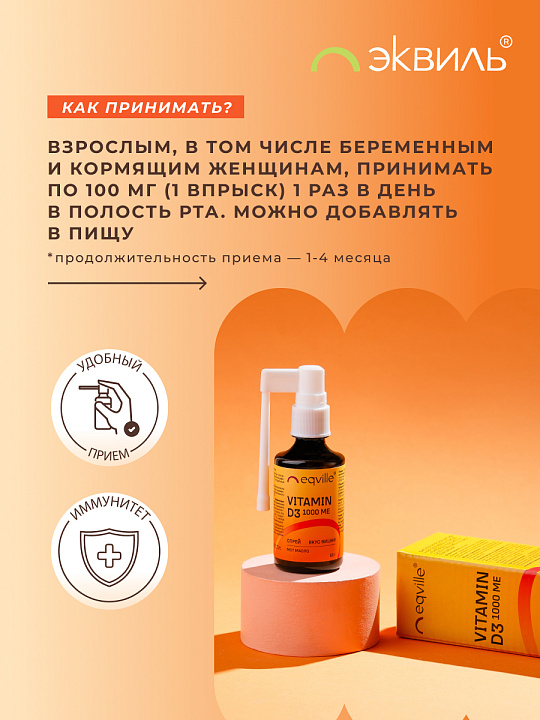 Витамин D3 способствует укреплению иммунитета, так как влияет на производство лимфокинов - медиаторов клеточного иммунитета. Он активирует противовирусный иммунитет, а его ежедневное применение защищает от инфекций дыхательных путей и снижает риск ОРВИ.